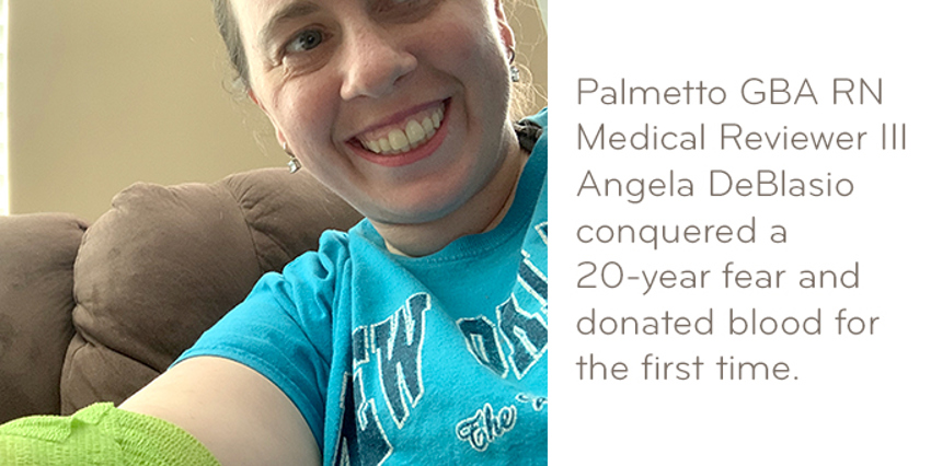 BlueCross BlueShield of South Carolina, parent company of Palmetto GBA, encouraged employees to donate blood during this time of need with the incentive of a chance to win 20 hours of paid time off. DeBlasio, now a RN Medical Reviewer III at Palmetto GBA, decided this was the perfect time to conquer her fear of donating blood.