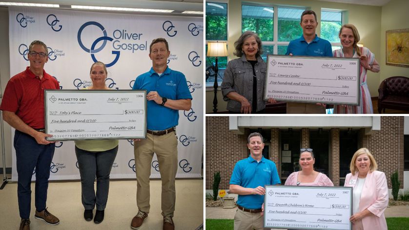 Our 2021 Best of Philanthropy-Time and Talent Award winners, Division 10, presented donation checks to Lourie Center SC, Epworth Children's Home, and Oliver Gospel—Toby's Place to support their services in our local communities.