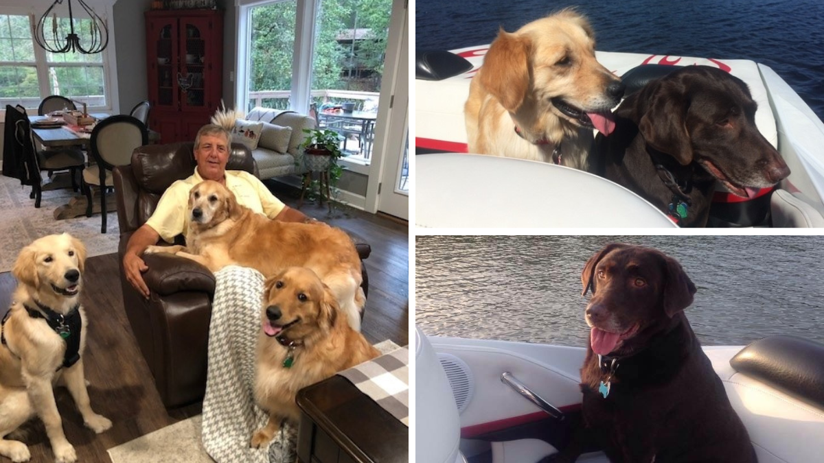Julie's love for dogs inspired her and her husband to adopt three more Golden Retrievers from shelters in Alabama. Bella was their first, followed by Vinny and Bear. Julie says, "There is nothing better than having them in our home, where we know they are safe and protected."