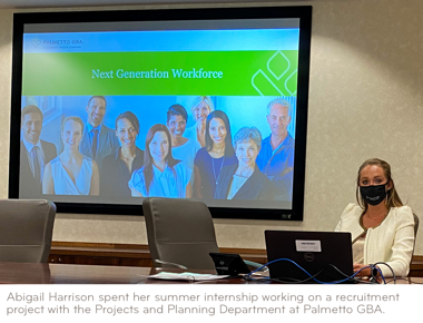 Harrison’s research project wrapped up with a presentation to Palmetto GBA President Joe Johnson and included her insights and recommendations on ways the company can better reach young professionals. Her research also included suggestions to engage current employees in the recruiting process and recommendations on creating a more robust digital presence.